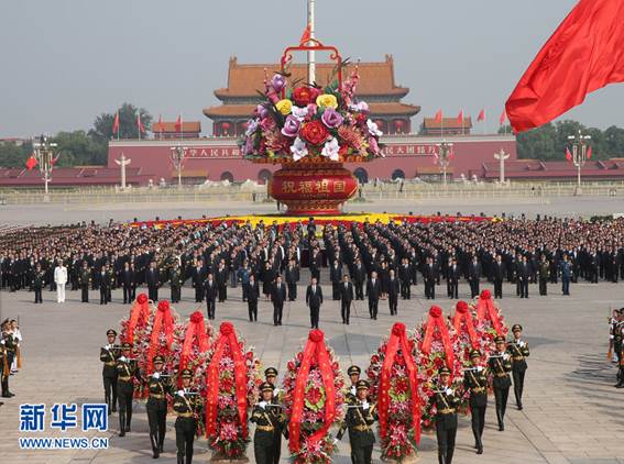 9月30日,党和国家领导人习近平、李克强、张德江、俞正声、刘云山、王岐山、张高丽等来到北京天安门广场,出席烈士纪念日向人民英雄敬献花篮仪式。(新华社发)