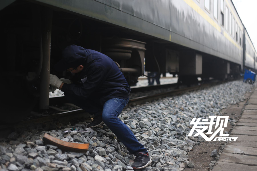 列车上的工人师傅正在检修车辆,现在已经有许多新车靠机器自动化检修,慢慢地人力也省掉了。