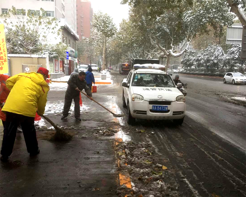 11月22日,西安市普降大雪,西安市气象台也发布了暴雪黄色预警信号。为应对大雪天气,防治道路积雪结冰,未央区城市管理局以雪为令,积极行动,组织全区城管执法人员、环卫工人,通过集中清扫、抛撒融雪盐、水车冲洗、沿街门店商户共同参与等措施,对我区未央路、北二环、朱宏路等车辆密集路段进行了清理。截至目前,共出动执法人员50人次,环卫工人2214人次,冲洗车辆102台次,抛撒融雪盐5吨,清扫积雪30余吨。目前清雪工作正在继续。同时,未央区城市管理局已经通知各街道、管委会、相关单位积极组织清雪,确保雪停后及时清理干净。