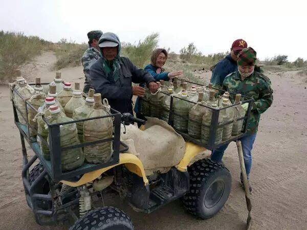 1976年,毕业于甘肃师范大学外语系斯拉夫语专业的图布巴图,放弃到中央人民广播电台工作的机会回到家乡,先后在额济纳旗水电局、经管站、财政局等单位工作。1983年他主动申请回到位于巴丹吉林沙漠西部的家乡古日乃苏木工作,先后担任人大主任、苏木达等职务。工作期间,图布巴图目睹了沙尘暴的肆虐,昔日美丽的古日乃湖外围的绿洲渐渐沙化,古日乃湖一天天缩小,他开始意识到了生态恶化的严重性,并暗暗下定决心,要为保护家乡生态环境尽一份绵薄之力。 2002年,为改善日益恶化的生态环境,为阻止逐年严重的土地沙漠化,也为给子孙后代创造一片绿色的生存环境,图布巴图提前办理了退休手续,留在生活条件艰苦的古日乃。自此,开始了他们夫妻两人的漫漫植树造林治沙之路…… 为了防沙治沙,图布巴图和老伴儿省吃俭用,拿出家里所有积蓄用来购买树苗,拉起一道10多公里长的围栏,围封2000多亩荒漠,开始植树造林。 万事开头难!由于古日乃地区严重缺水,常年处于干旱状态,刚开始,老俩口种的树成活率不高。可是,面对低成活率和恶劣的环境,固执的图布巴图没有动摇,而是买了相关书籍,从书里找答案,向林业等相关部门专业技术人员求教!在树种选择上下功夫,从“源头”开始提高造林成活率。经过与专业人员探讨,他们挑选适宜本地区种植的耐旱、耐盐碱的梭梭等优良草科植物。因地制宜、因时抢栽。春天风大,夫妻俩把梭梭苗泡在水里,等风势减弱时,抢时间栽种,像是跟老天爷玩捉迷藏,常常累得喘不过气来!夏天是梭梭苗补水的季节,沙漠中的气温高达45℃以上,夫妻俩顶着似火骄阳一趟趟拉水浇灌。45℃的高温下,普通人坐着都觉得难忍,何况是60多岁的老人,还要在烈日下劳作!那种艰难是我们无法想象的…… 别人种梭梭一年只浇一次水,而为确保苗木成活率,他们要浇3次。寒来暑往,在绿化造林上不仅要倾尽人力,更要有物力支持,老俩口已经把80多万元洒在这片土地上。付出总有回报!多年来,在老俩口的精心伺弄下,苗木的成活率在95%以上,围封荒漠的绿化率达到80%以上,苗木成片成活面积达到500余亩。2011年,丈夫图布巴图荣获额济纳旗“治沙造林标兵”荣誉称号。2015年,图布巴图家庭荣获全国“最美家庭”荣誉称号。同年,这个家庭被授予自治区热心公益“最美家庭”标兵户荣誉称号。 在绿化造林的同时,他们还不断尝试用梭梭嫁接肉苁蓉。经过几年的栽培实验,在他们自己的绿化围栏里成功实现了肉苁蓉的人工嫁接!他们还把这一技术传授给当地百姓,为这个地区的牧民找到了一条新的致富路。目前,当地牧民通过种梭梭嫁接肉苁蓉,每户年均纯收入达4万元。 由于长期野外作业,夫妻俩明显比实际年龄苍老,面庞被大漠骄阳烤得黝黑,双手皲裂如同树皮,手指和手背上都贴着泛黄的胶布。如果不特别介绍,你根本看不出他们一个是退休干部、一个是退休教师,有着足够他们过安逸生活的退休金!很多人不理解,他们为什么放着舒适的日子不过,终日风尘仆仆,骑着摩托车忙碌在治沙绿化的拉水、育苗工作中…… 2010年,丈夫图布巴图生了一场重病,两次手术后医生叮嘱他要好好休养,避免重体力劳动,可是在家里休养了一个月后他就又一次回到了绿化治沙的阵地,他放不下心爱神圣的古日乃湖,更放不下自己亲手栽种的这片绿洲,任何困难都阻挡不了他对沙漠绿化工作的热情。 2011年,妻子因劳累过度患大动脉血管瘤,由于古日乃地区较为偏远医疗条件差,送医不及时导致妻子脑出血瘫痪在床,失去了生活自理能力。因儿女们已各自成家,都在距离家乡近300公里的旗政府所在地工作,无法护理病中的母亲。照顾妻子陶生查干生活起居的责任便全部落在图布巴图身上!但是,这一变故并没有打消图布巴图种树治沙的信念。四年来,这位执着的退休老干部,在悉心照顾妻子的同时,仍然奔忙在种树的事业上。
