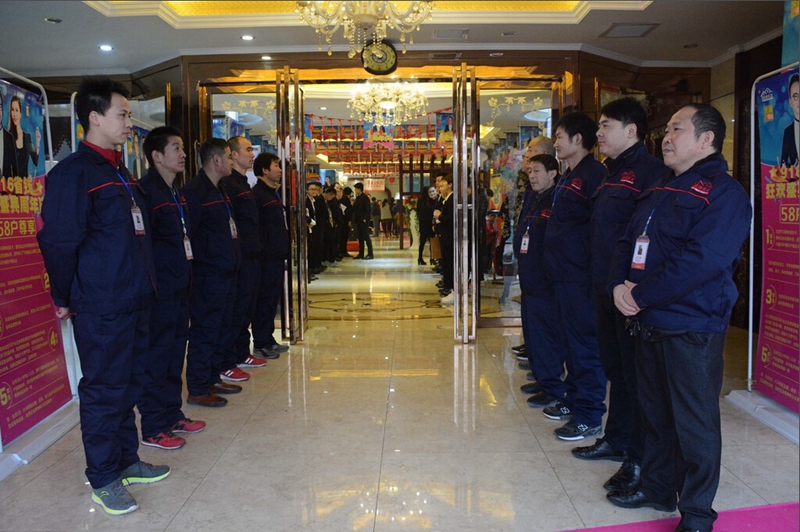 上午8点,盛腾家装工厂店门前,工作人员精神抖擞,整装待发。
