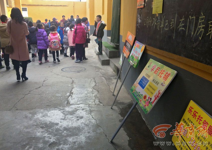 2月15日中午,大雁塔小学放学,孩子们走出学校后,低年级的大部分学生直接走进学校北侧的大雁塔小学家属院内,这里开设了数十家托管班,共有600多学生 华商记者 强军 摄 毛蜜娜 文