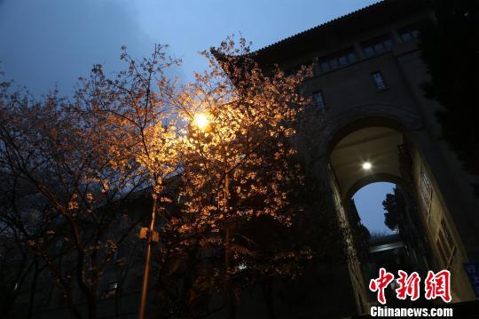 夜色下,樱花不再有白天的粉妆与耀眼光华,另成一番景致 张畅 摄