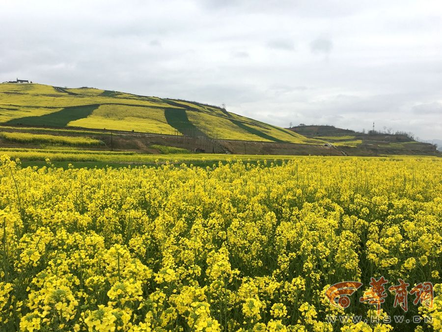 龙山观花点。整座山头被专门设计栽植成一个朱鹮造型,栽植有“真美汉中”图案,这巨幅造型与图案都被镶嵌在油菜花和小麦布成的黄绿相间的坡地里。不过“真美汉中”全景得航拍才能看的清楚。