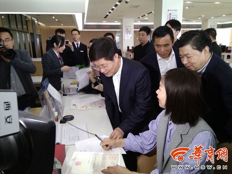 4月1日,在《外商投资企业登记管理权》授牌仪式中,西安市政协主席、西咸新区党工委书记、管委会主任岳华峰,省工商局局长王吉德,省工商局副局长郑成瑞,西咸新区管委会副主任王飞等领导出席,岳华峰和王吉德共同向西咸工商局授“外商投资企业登记管理授权局”牌匾,随后参观综合服务大厅,观看企业注册流程,西咸新区工商局作为我省商事制度改革的先行者、排头兵,在服务新区创业公司,优化营商环境的目标下,他们不断进取,敢为人先,主动破题,着力争当新区政务服务的“五星级”服务员,实现了优化服务上电子化,标准化,国际化。