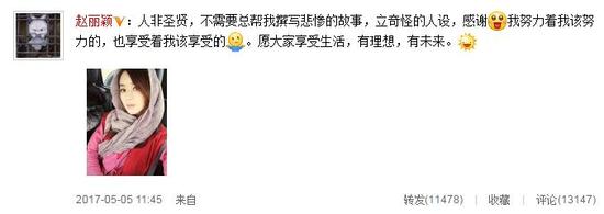 5月5日上午,赵丽颖发文称:“人非圣贤,不需要总帮我撰写悲惨的故事,立奇怪的人设,感谢!我努力着我该努力的,也享受着我该享受的。”得到网友们的高度关注。