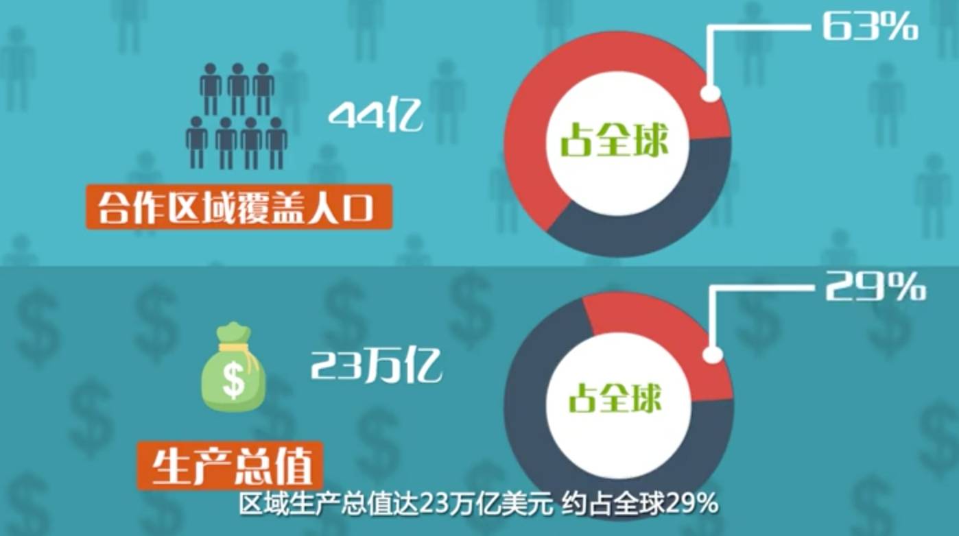 这是一道无比壮美的世界经济走廊!倡议提出三年多来,已经有100多个国家和国际组织参与,40多个国家和国际组织与我国签署合作协议。合作区域覆盖人口达44亿,约占全球总人口的63%;区域生产总值达23万亿美元,约占全球29%。