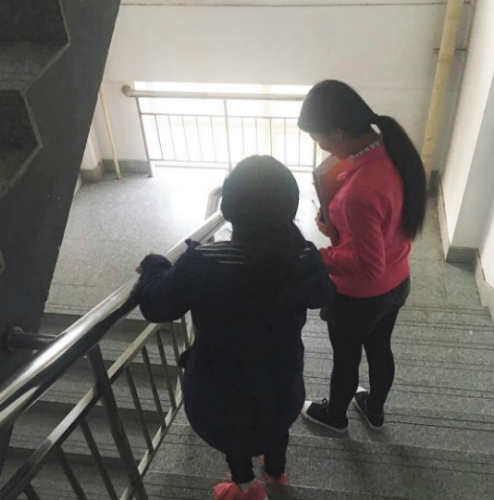 被搀扶的女孩叫王莹,是哈尔滨石油学院大二的学生,因患有脑瘫,走路十分不便,自入学起,同寝室的95后女孩韩宝玉便承担起了照顾王莹的责任,早晨帮她打水,扶她去课堂,中午扶着她去食堂,下午再一起去教学楼上课,同寝室的其他同学也经常主动帮忙。对于王莹而言,韩宝玉就像是她的一副“拐杖”,“护送”她去每一个想去的地方……今年5月4日,韩宝玉因此获得了由哈尔滨石油学院组织评选的“感动校园人物”。