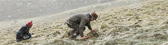 扎西爸爸说,今年的虫草少,因为下雪天多,不好挖,但虫草要比往年大,价格也高了不少。藏民每年这一个月一家人能赚三万块钱,占到整年收入的四分之一左右。因此,他们对这片土地充满了感恩。(本报特派记者 史春波/文俞跃/摄)