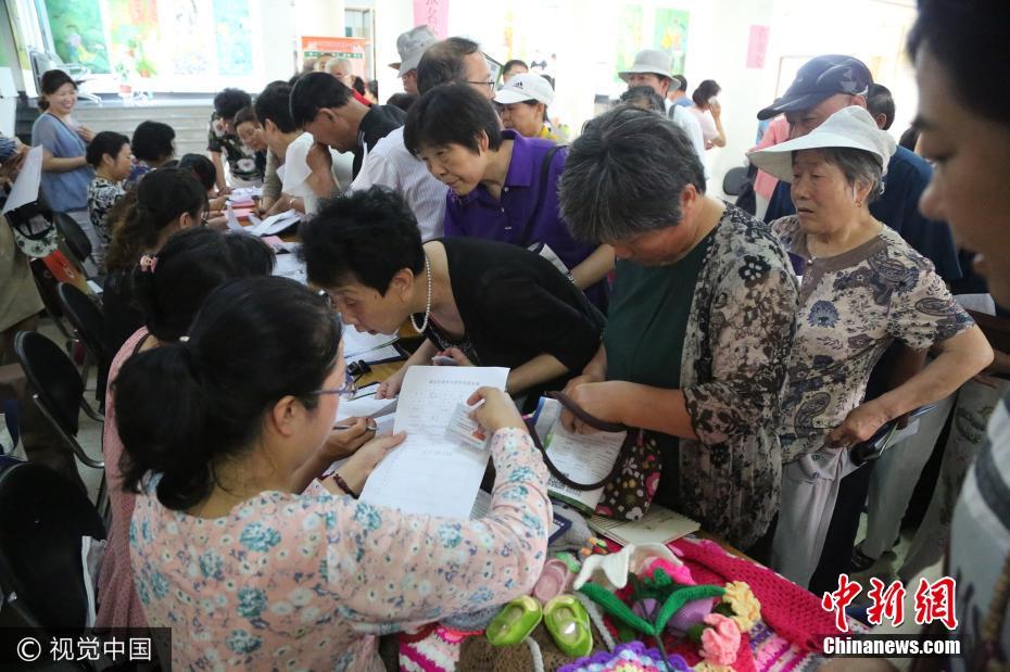 上午8时多,老年大学报名大厅内排起长队,不少老人一下子报好几个班。图片来源:视觉中国