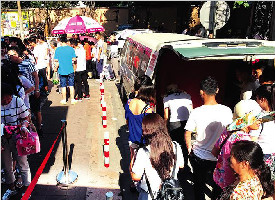 昨日上午,三秦都市报记者来到西安市疾病预防控制中心门口,此时还不到9点,但等候办理健康证的队伍已排了近百米。在距该中心大门入口约3米远的人行道上,停放着两辆白色金杯面包车。