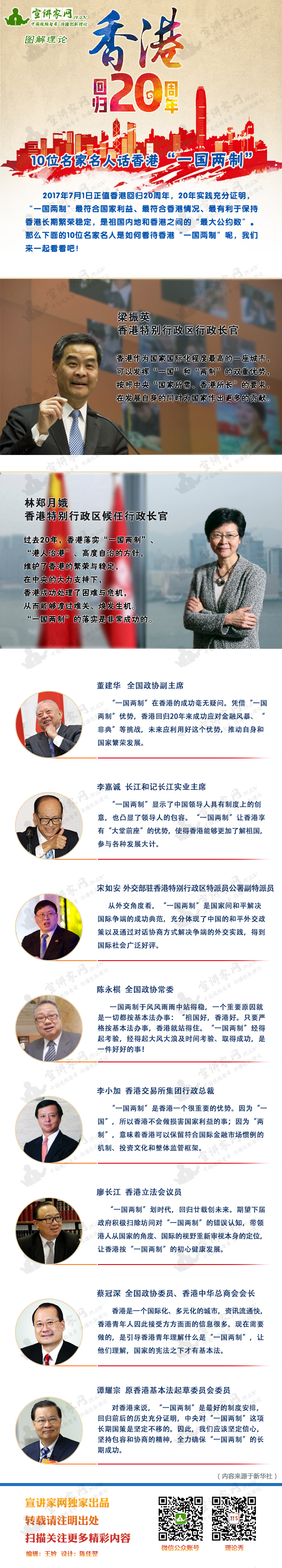 核心提示:2017年7月1日正值香港回归20周年,20年实践充分证明,“一国两制”最符合国家利益、最符合香港情况、最有利于保持香港长期繁荣稳定,是祖国内地和香港之间的“最大公约数”。