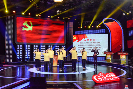 在铿锵有力的入党誓词中比赛拉开序幕,知识问答、音频题、电影题和情景剧等不同类型的趣味题型,让整场竞赛的氛围逐渐升温。“滴”的抢答声刚响,6支参赛代表队竞相拍响抢答器,你追我赶的激烈劲儿逐渐燃爆全场。红歌接唱环节,一曲《保卫黄河》将活动推向了高潮,全体观众情不自禁地跟着合唱起来,“保卫家乡,保卫黄河,保卫华北,保卫全中国。”一位在线观看的网友留言说:“革命年代已经过去,但是这些红歌至今在传唱,也就时刻提醒着我们不忘历史 。”