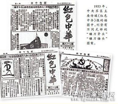 1933年,中央苏区主要传媒《红色中华》报的插图中,刊登有不同式样的“镰刀斧头”“镰刀锤头”图案。