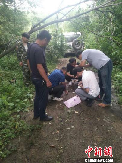 工作人员现场测量勘察 天桥岭林业局供图 摄