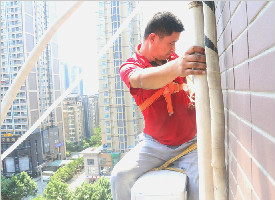 平台设计距离太远 工人好似“蜘蛛侠”攀墙而过
