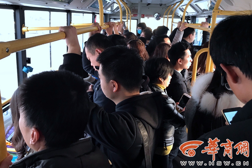 西安市科创路沙井村公交车站,记者乘坐312路公交车向起重机厂方向坐,车上的乘客比较多。