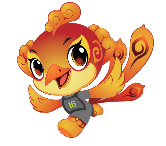 吉祥物《阳阳》以秦文化图腾“玄鸟”为设计原型,取名“阳阳”,简洁明了的体现出陕西省第十六届运动会的举办地——咸阳。图形中融合“如意、水纹”元素,身穿玄色16字样秦甲,形成活泼时尚的卡通形象,凸显秦文化,展现咸阳人文精神,诠释“全民省运、激情省运、和谐省运”的理念。双翅展开的奔跑动态,既展现咸阳人热情奔放欢迎各地运动健儿和嘉宾的胸怀,又彰显出“团结奋进、拼搏向上”的体育精神。整体形象卡通、拟人,生动、活泼、欢快,易于应用传播。
