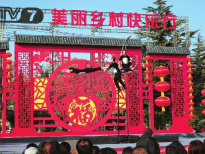 12月10日,CCTV-7《美丽乡村快乐行》春节特别节目在陕西兴平市航空广场录制完成。节目以“汉风唐韵,人文兴平”为主线,以“快乐咸阳行,魅力兴平过大年”为主题,现场录制的节目包括舞蹈、歌曲、杂技、喜剧等6大类,共计19个节目,内容不但涉及兴平辣椒、兴平大蒜、biangbiang面、兴平醪糟、马勺脸谱等地方元素,还包括有个人绝技、美食等特色节目。