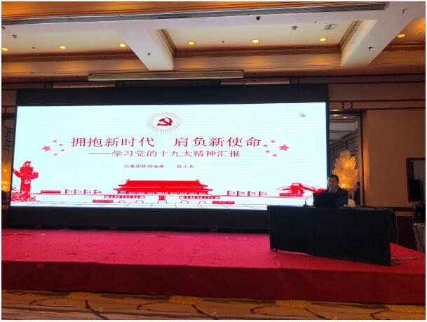 会上,党的十九大代表、团省委书记段小龙以“拥抱新时代 肩负新使命”为主题,做了十九大精神宣讲,从参会的亲身经历和现场感受出发,从新时代、新思想、新征程、新要求、新嘱托五个方面,全方位地向与会人员传达了十九大精神,对青年企业家学习贯彻十九大精神提出了希望。
