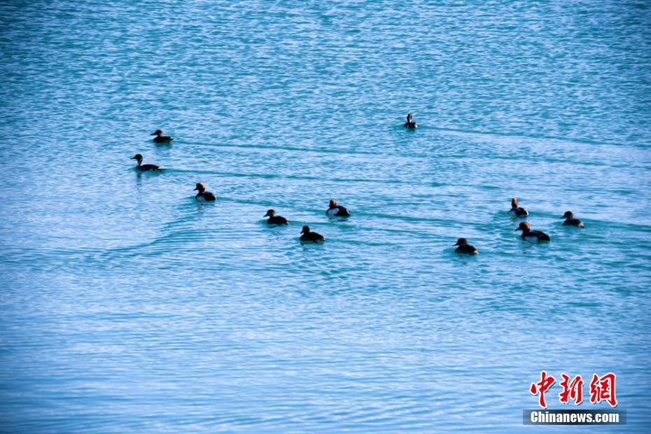 春分时节,地处甘肃河西走廊西端的肃北蒙古族自治县天气暖和,阳光明媚。在该县西滩调蓄水库,几十只白鹭、斑头雁、野鸭子在这里游水嬉戏,它们时而在水库上空展翅飞翔,时而在水库边觅食、戏水。各种候鸟的身影映在河水中,形态优美,勾勒出一派美丽、祥和的春景图。