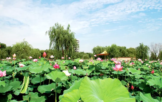 灞桥生态湿地公园的生态荷塘内荷花之美让人沉醉,穿行在秀水廊桥间,更能欣赏到各色荷花和灞柳、灞水交织出的别样风情。七月到此,感受拥抱醉人荷花的一刻,闭上目“灞柳风雪”吹拂在发梢,睁开眼北部江南在眉眼浮现。