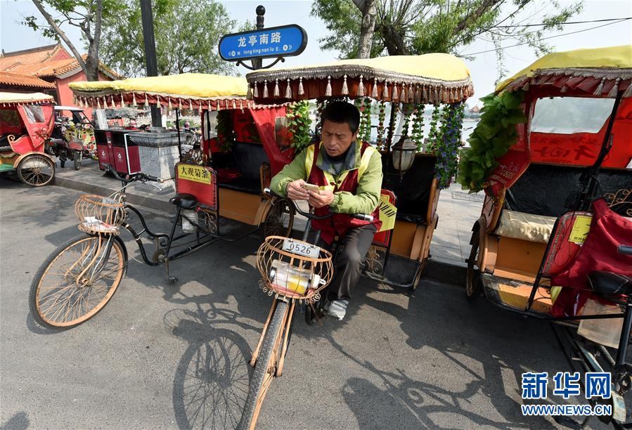 许世杰在开封市龙亭景区附近“趴活”(4月26日摄)。