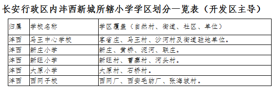 2018年长安区义务教育公办学校学区划分(小学+初中)