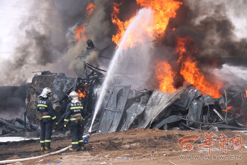 华商报记者从得到的视频中看到,着火位置在亚欧加油站旁,现场浓烟滚滚,火势非常大。定边县消防中队接到报警后出动2辆水罐消防车、1辆举高喷射消防车、17名消防队员,调派农机巷卫星站1辆水罐消防车、7名战斗员赶赴火灾现场进行灭火。