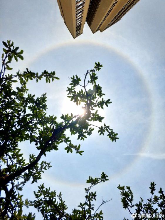 日晕是一种大气光学现象,是日光通过卷层云时,受到冰晶的折射或反射而形成的。日晕多出现在春夏季节,民间有“日晕三更雨,月晕午时风”的谚语,在一定程度上成了天气变化的一种前兆,出现日晕天气有可能转阴或下雨。但有专家也表示,“日晕三更雨”这样的说法并不是绝对的,也有出现日晕但并未下雨的情况。