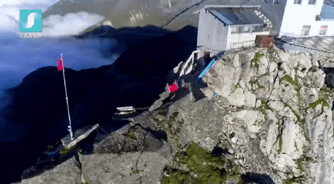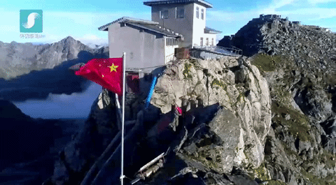在戍边生活中,升国旗是哨所官兵心中最神圣最庄严的仪式,虽然哨所的国旗杆矗立在海拔4655米的山脊上,但只要太阳升起,官兵们就会沿着山脊,跳过峭壁,在不足六平方米悬崖平台上让五星红旗高高飘扬。