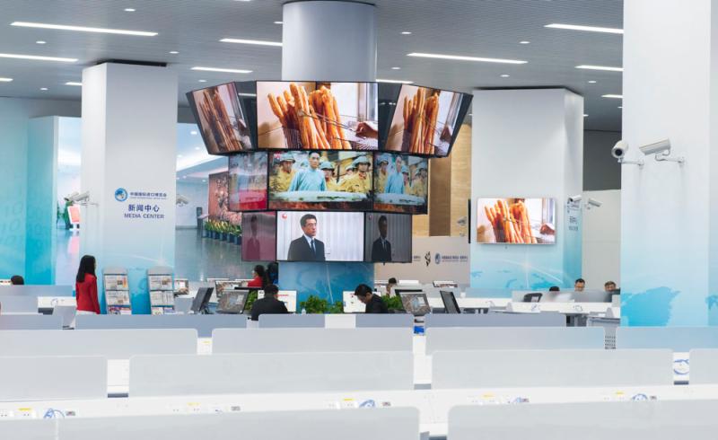 设置大屏、电视机,实时播放公共信号画面,提供进口博览会相关信息。