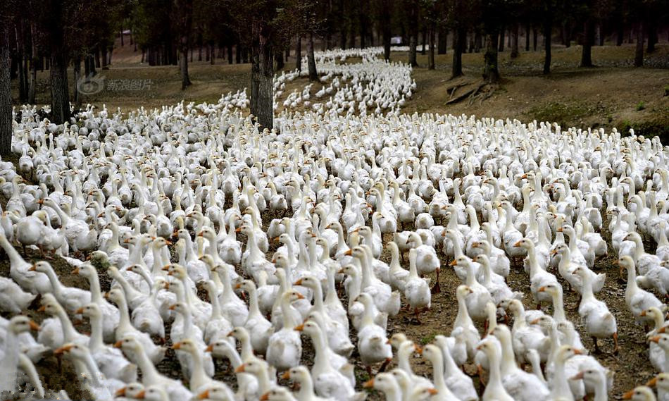 2018年10月2日,在辽宁省阜新市阜蒙县,一位农民牧鹅的场景极为壮观,一群白鹅散落在公路一旁,像大片的白棉花一样慢慢移动。