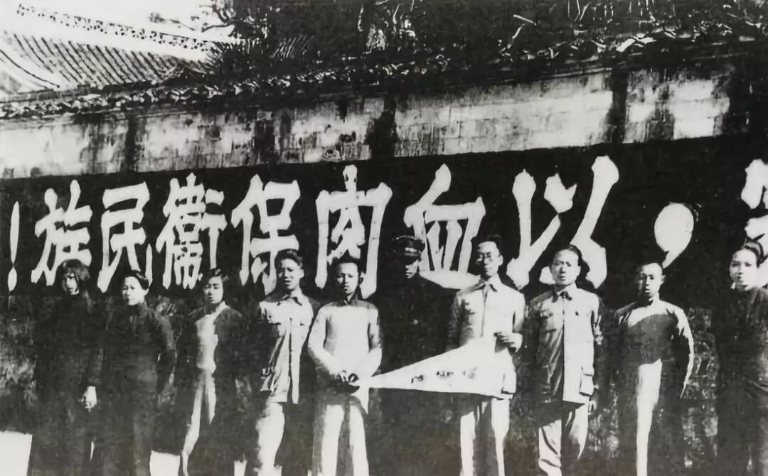 △1931年,“九一八”事变后,北平、上海等地学生在南京国民党政府门前示威,抗议蒋介石的不抵抗政策,要求出兵抗日。