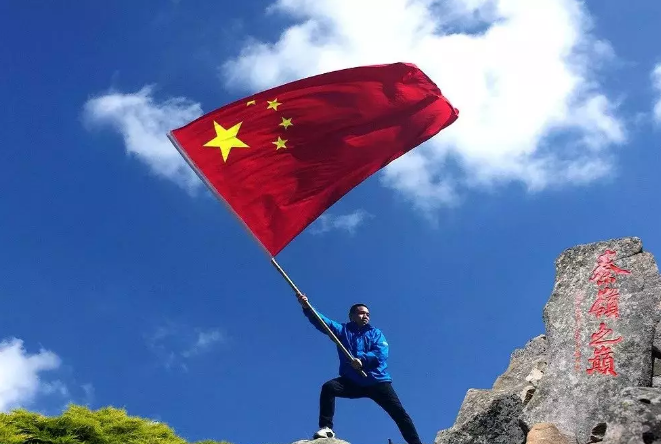 国庆节假期,游客在秦岭之巅和国旗合影,并发给朱雀森林公园官方微信,当选最美国庆照,赠送精美礼品。