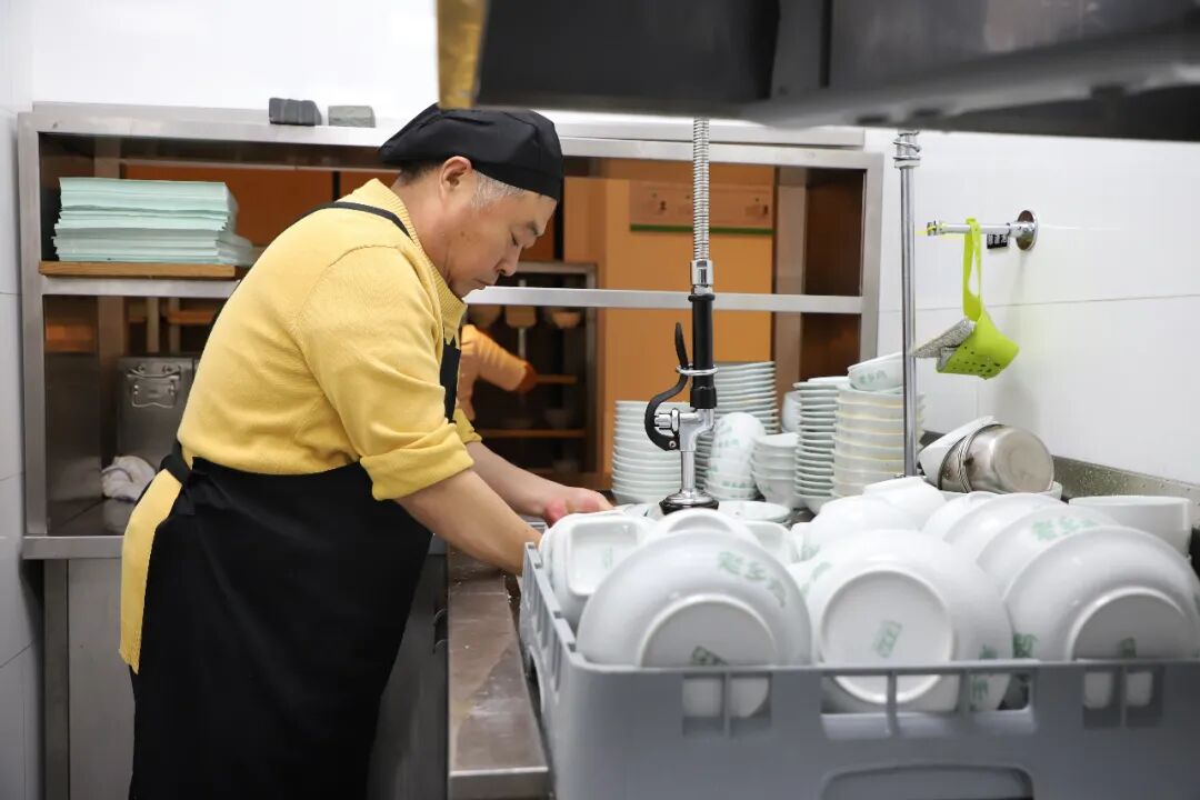 “我们替你们做更好吃的饭。”束从轩捕捉到消费者的需求,创造性提出了“家庭厨房”的概念。在老乡鸡的餐厅里,极简的吊灯洒下温暖的光,热腾腾的开放式厨房冒着香气和热气,勾勒着和家人坐在一起吃饭的画面,老乡鸡将“家”的元素融入每一个细节。从餐前洗手、餐中自助,到餐后补妆,每个看似普通的地方,都洋溢着浓浓的烟火气和人情味。