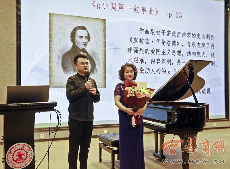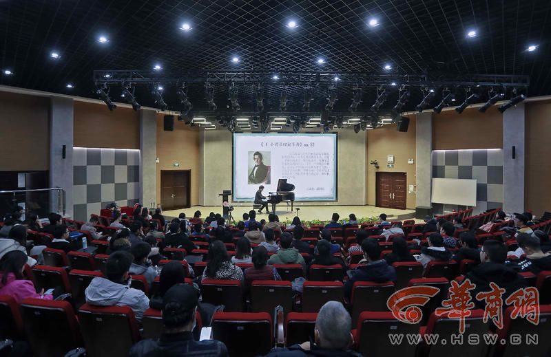 以走近大师、感受经典、陶冶情操、提高修养为目的,讲座开始陶敏霞教授讲述了波兰作曲家、钢琴家肖邦音乐作品及演奏的风格特征。接下来陶老师对肖邦最具代表性的《f小调第四叙事曲》《b小调第一谐谑曲》《降b小调夜曲》《波兰舞曲“英雄”》《练习曲大海》《F大调第二叙事曲》《g小调第一叙事曲》等8首曲目进行了深入浅出的解析,并由西安音乐学院钢琴专业的学生逐一对讲授作品进行了的现场演奏。