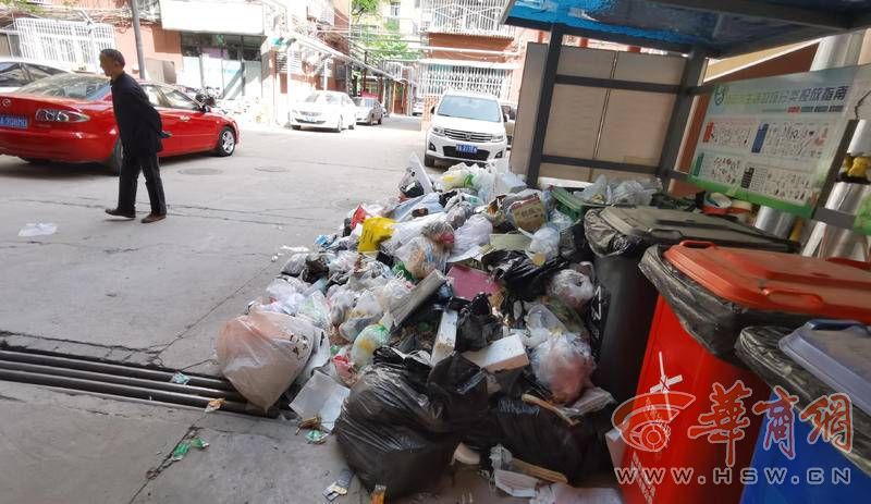 4月9日上午,华商报记者来到位于西安市含元路铁道办家属院,小区门口车辆、行人都可随意通行,没有道闸,也没有保安查看健康码等信息,进入小区后便能看到门口垃圾站堆满了生活垃圾,能闻到明显的异味、垃圾堆上还飞着很多苍蝇,小区内其他多个大型垃圾桶也无人清理,垃圾已放不下,堆在桶外。