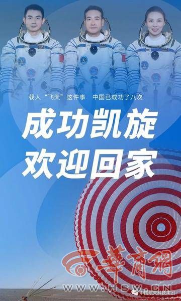 4月16日10时许,神舟十三号载人飞船返回舱在东风着陆场成功着陆,航天员翟志刚、王亚平、叶光富平安返回、感觉良好!