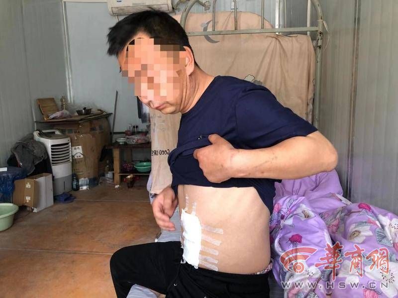 从事发当天起,在西安市红会医院住院到5月5日,经医院检查脾脏破裂,头骨、肋骨骨折,入院当晚做了脾脏切除手术,4月28日做了颅骨手术,“本来肋骨也要手术,总是被催费用,我就出院了。出院后就在工地工棚里没人护理,就连吃饭都是自己点外卖,因为外卖送不到门口,还要自己到门口去拿,换药也没有人陪同,事发后目前工地也没有给出说法。”