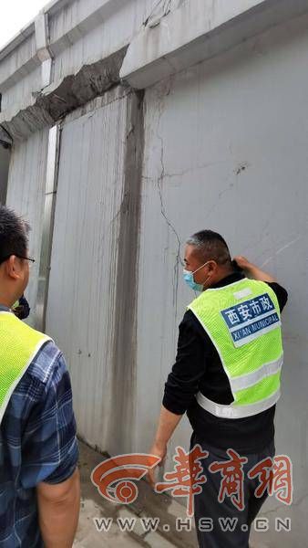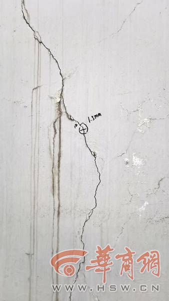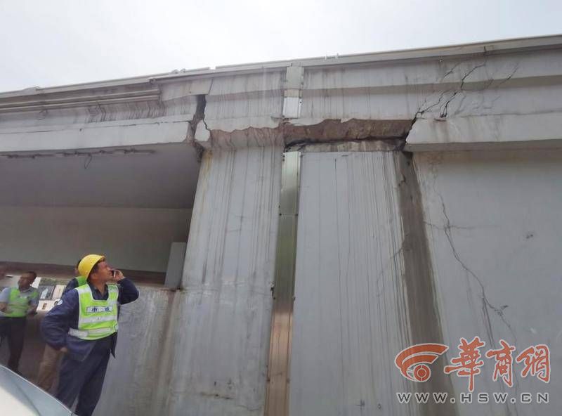 5月20日上午,华商报记者前往该处看到。裂缝位于高架桥上下桥处,属于坡体区域。部分区域混凝土已经脱落漏出内部钢筋。裂缝宽度约1.5毫米,部分裂痕长度超过1米。此外辅道路面有较为明显的下陷,该处由于在南三环上,车流量极大。