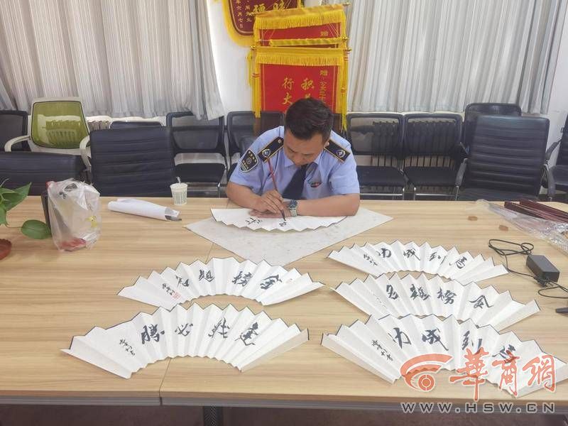 “马到成功”、“金榜题名”、“逢战必胜”,这是407路公交车驾驶员潘锋利写在扇面上,给考生们送出的祝福。