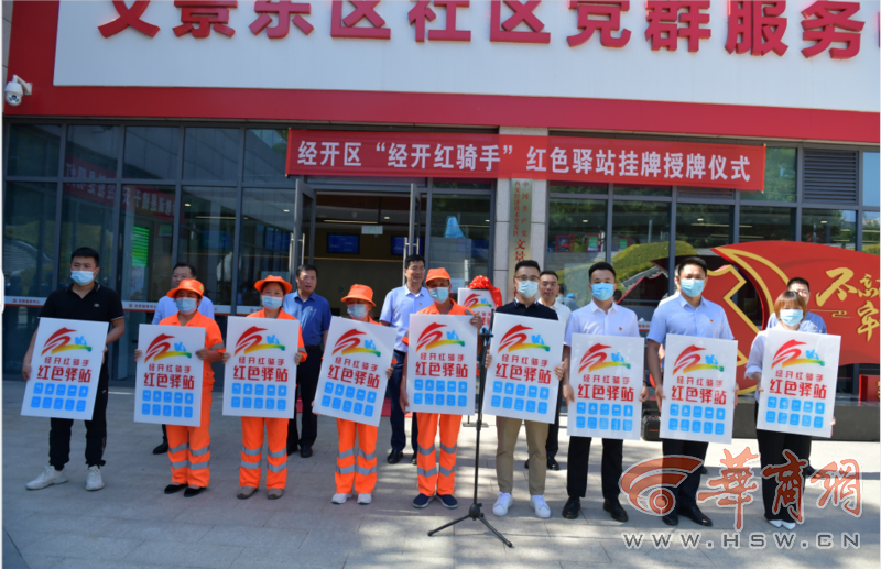 此次共有文景东区社区、文景西区社区、明新社区、北客站南广场、北客站北广场等10家“经开红骑手”红色驿站揭牌运行。