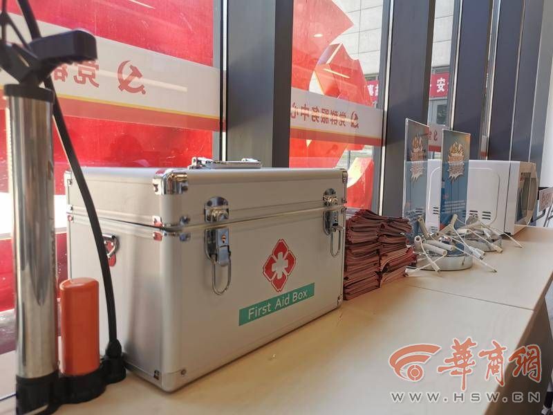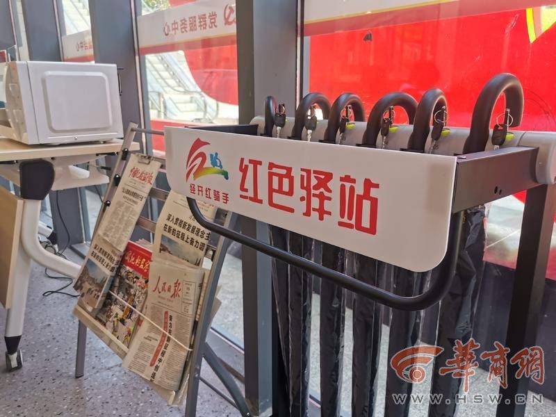 走进位于开城路文化中心广场的文景东区社区“经开红骑手”红色驿站,华商报记者看到,在社区党群服务中心原有功能的基础上,经开区添置了急救包、充电设备、微波炉、雨伞等设施设备,可满足快递员、外卖小哥、网约车司机的相关需求。