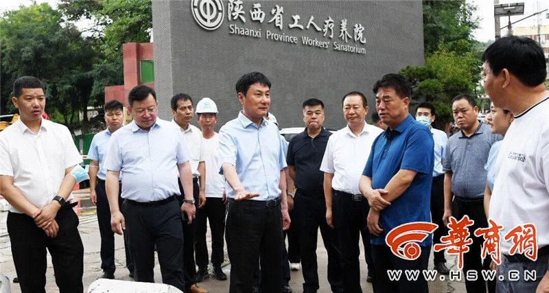 7月5日,省人大常委会副主任、省总工会主席郭大为到陕西省工人疗养院督导提升改造工程建设情况,看望一线建设者并向他们发放“送清凉”慰问品。省总工会党组副书记、常务副主席王军,省总工会副主席、省国防工会主席吴志毅,省总工会二级巡视员姜晓军参加督导。