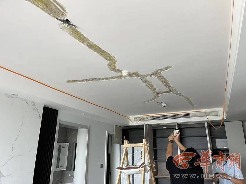 “反映后,物业联系地产派人上门检测,并沿着客厅墙顶的裂缝把我们装修好的腻子全部刮掉后,检测出是楼板开裂。”姚先生说。