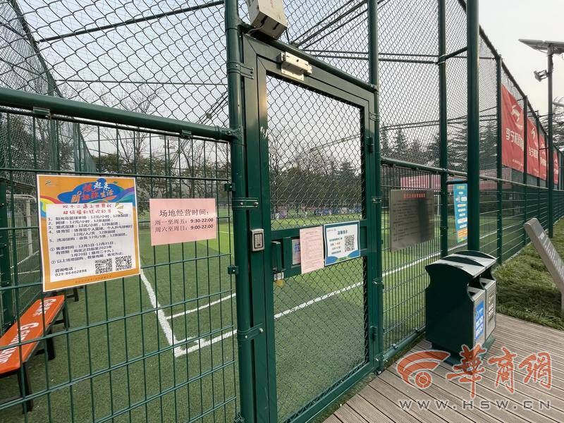 随后,记者来到西安城市运动公园,公园内有一个11人制的足球场及两个5人制笼式足球场。足球场外的开放公告中写道,足球场每周一上午9:00至12:00向市民免费开放,笼式足球场全年9:00至17:00向青少年半价开放。