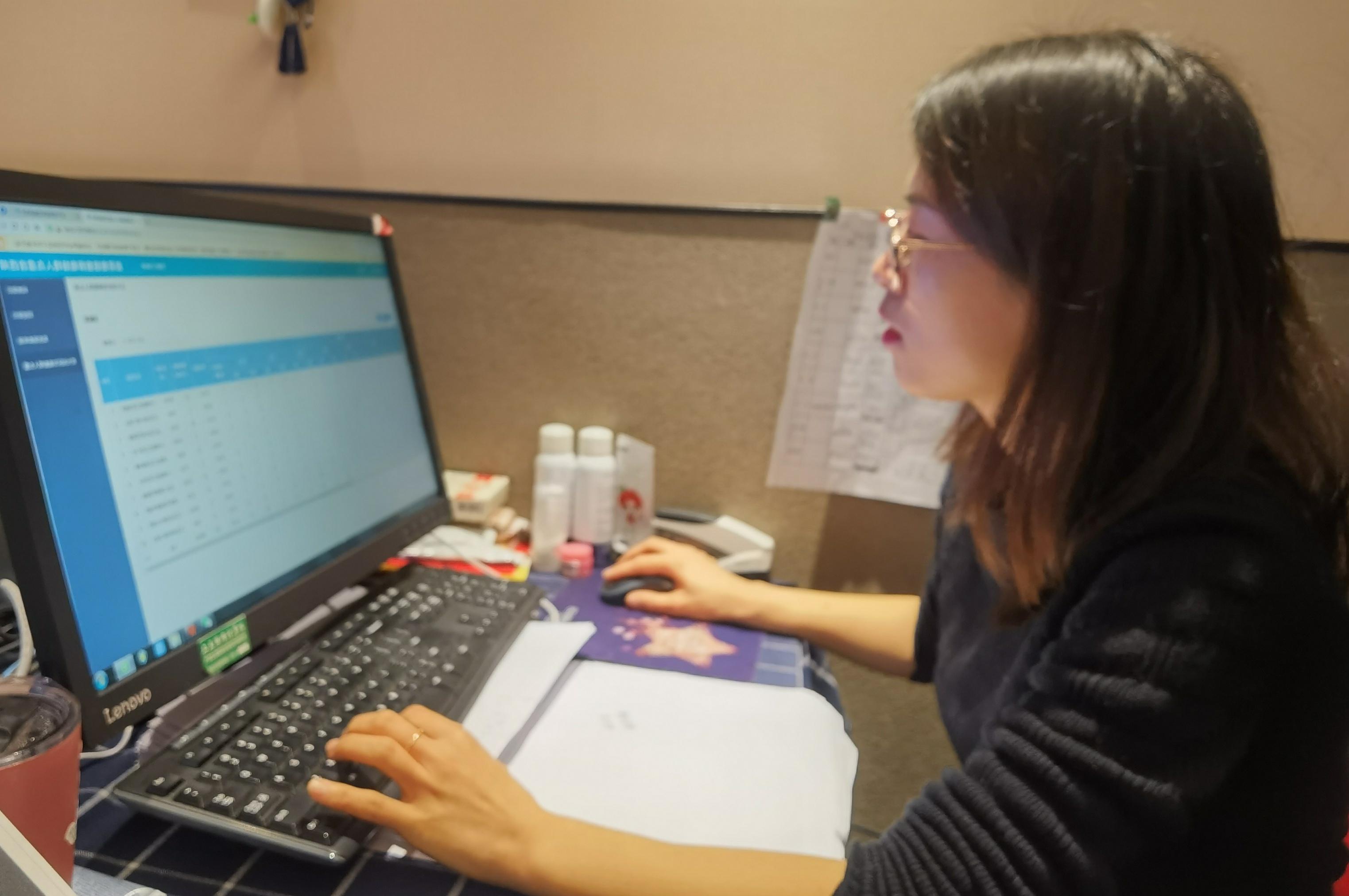 图为莲湖区社区卫生服务指导中心科员王玲玲在紧张的忙碌中。