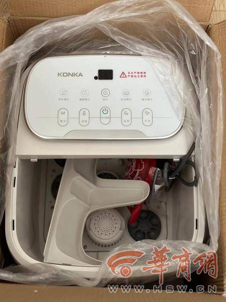 网购的电子洗脚盆,打开包装后发现里面湿漉漉的,他就觉得不对劲。