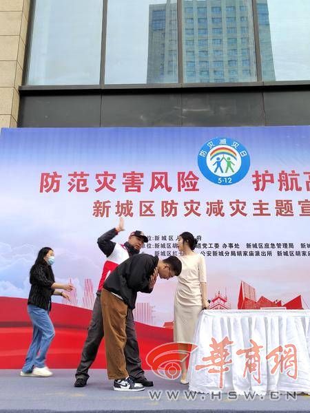 在日常生活中,哪些物品存在安全隐患?当遇到有人心脏骤停时,在黄金救援的几分钟内该如何实施救援?5月26日,以“防范灾害风险 护航高质量发展”为主题的西安市新城区2023年防灾减灾主题宣传活动在胡家庙街道万和城广场举行,现场全区各单位约80人参加了宣传活动。